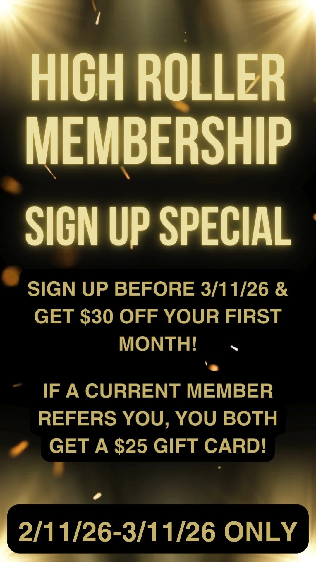 High Roller Membership Masquerade Ball Wednesday March 18th. Members check email for evite! 〰️