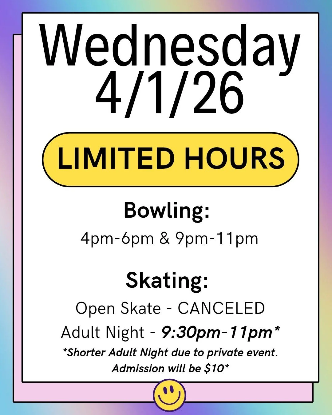 Follow us for updates on events, hours and fun things happening around the Bowl & Skate!
