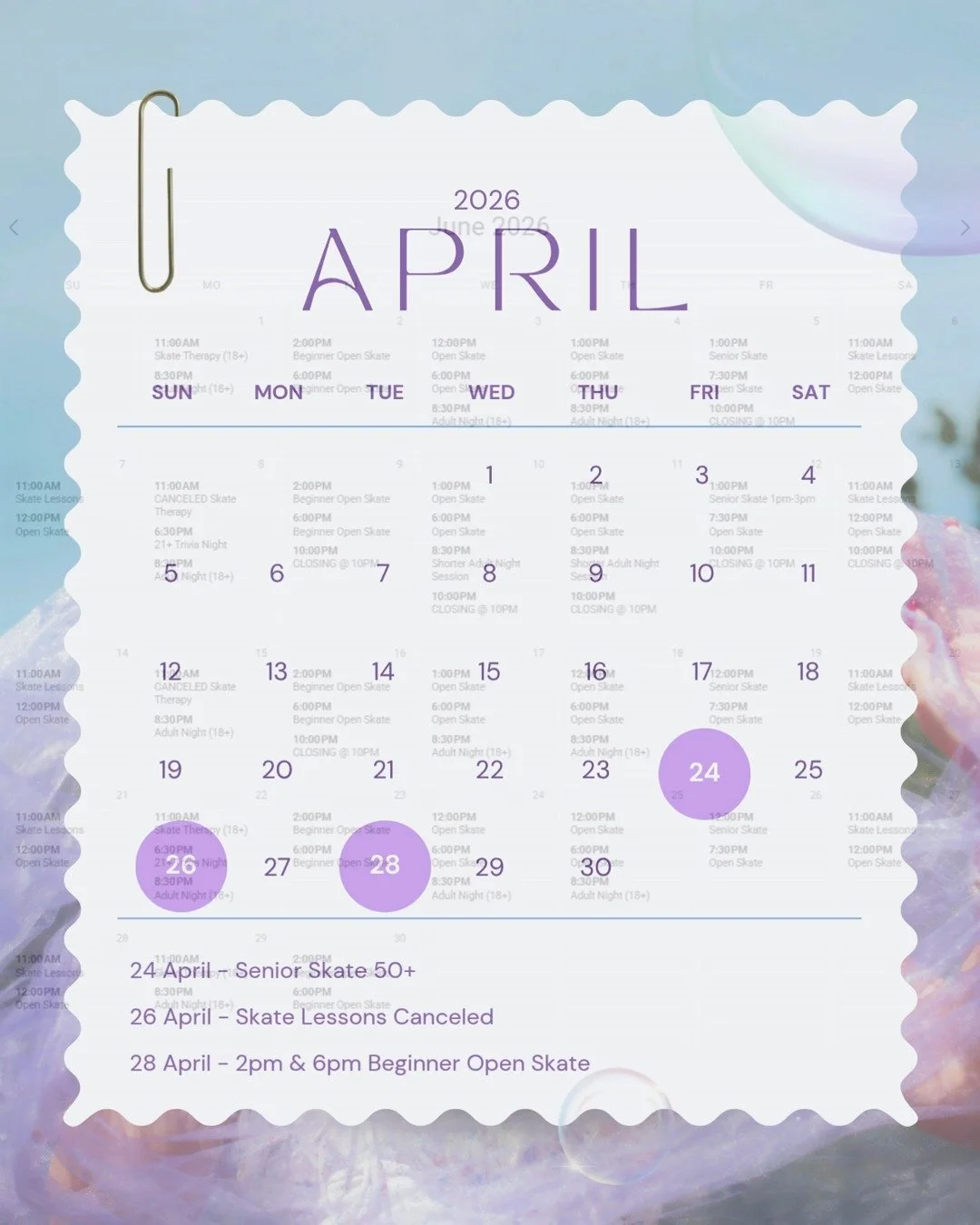 Skate Lessons canceled Sunday 4/26/26 due to private event 〰️